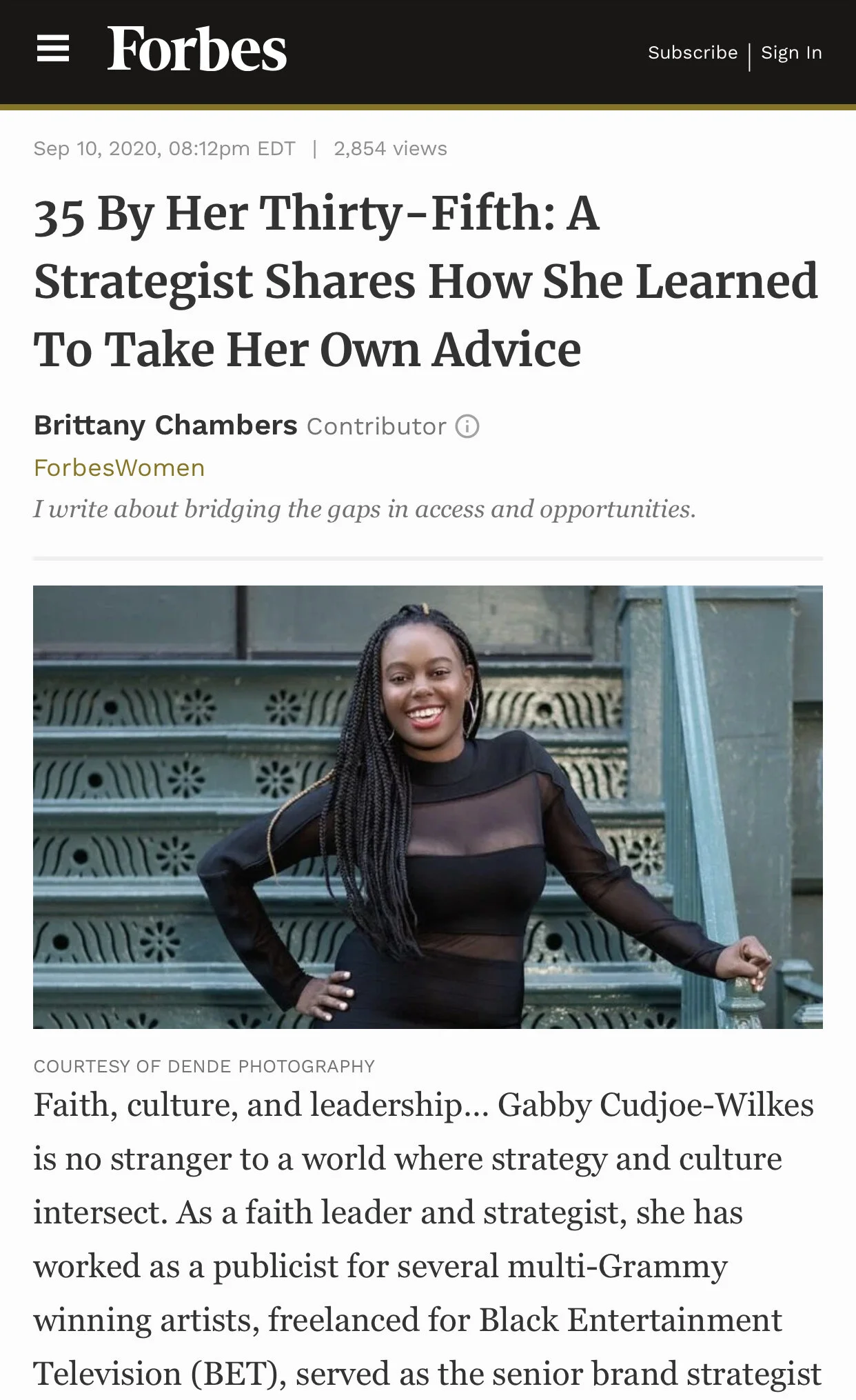 Pastor Gabby Cudjoe Wilkes is a brand strategist, event planner & pastor. Her work is situated at the intersection of faith, culture, leadership and strategy. Gabby spent over ten years in media and entertainment working on the events planning teams for companies such as BET, and working as a publicist for record labels such as Mathew Knowles’ Music World Entertainment as well as gospel music record labels eOne Music, RCA Inspiration and New York City based boutique PR firm, Plan A Media LLC.